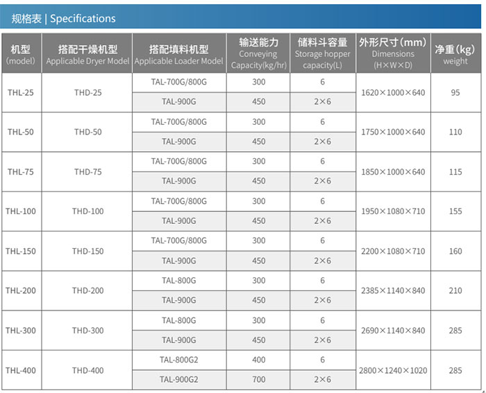 used to load dryed materials. Besides, TAL-900G isavailable for choose to realize the two-stage loading function.
