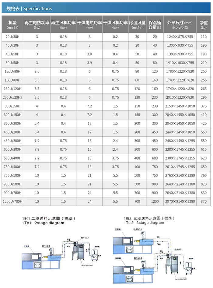 TDD 全系例表由祛濕、浪費時間四種功能分離式,一般混用于各樣塑膠材料,特別的是透濕性較可以的施工塑料件,如:PA、PC、PBT、PET 等,蜂巢轉輪在實現的條件下低能達到到 -40℃左右的露點。該全系例表副產物辨別是非 TD-H 全系例表蜂巢轉輪祛濕機結合下吹式全不銹鋼管歐化恒溫浪費時間料桶樂隊制造而成。
